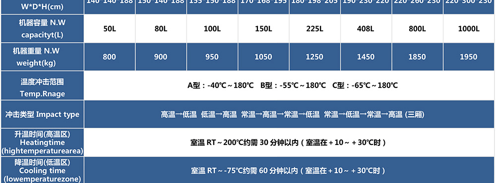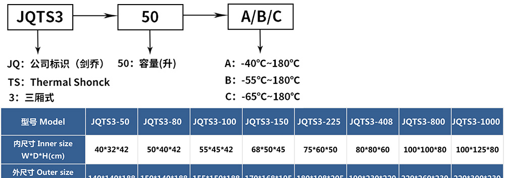 • 三廂式冷熱沖擊試驗箱型號命名及參數(shù)表