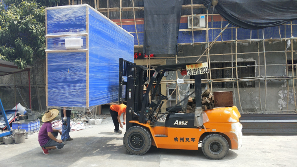 隨著東莞劍喬成功晉升為廣東劍喬,劍喬三棟5層樓近10000平米的生產基地也正在加速裝修,劍喬整體大變革的時期,訂單更是源源不斷,今日一大早業務部蘇經理的就接到,全球最大的汽車零部件制造商之一麥格納Magna集團電話商談80立方大型步入式恒溫恒濕試驗房控制柜的發貨問題,這已經是該客戶購買的第6臺設備了,下圖為發貨現場: