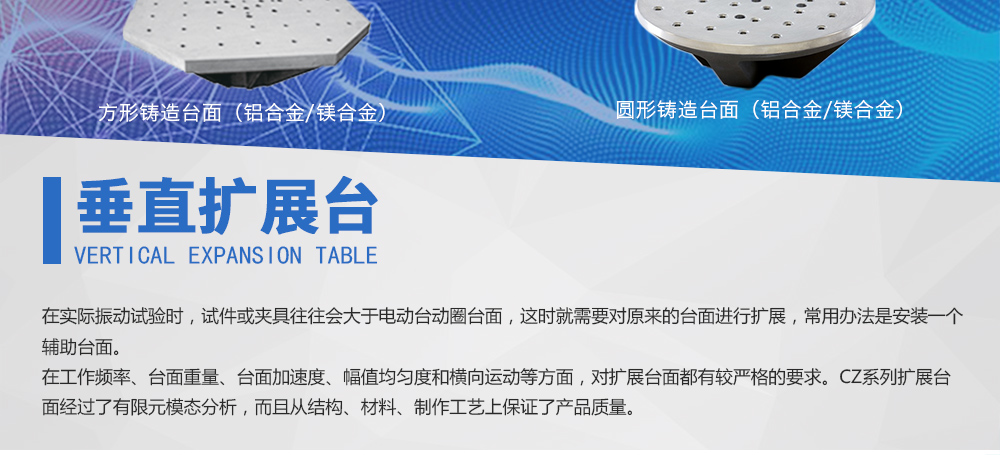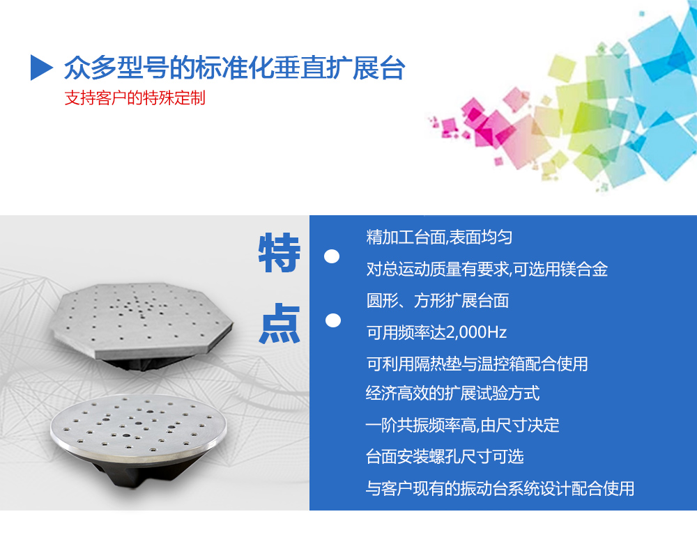 用途:供應(yīng)眾多型號的標(biāo)準(zhǔn)化垂直水平擴(kuò)展臺,而且支持客戶的特殊定制,從而滿足客戶對振動(dòng)臺性能擴(kuò)展的需求。在實(shí)際振動(dòng)試驗(yàn)時(shí),試件或夾具往往會大于電動(dòng)臺動(dòng)圈臺面,這時(shí)就需要對
